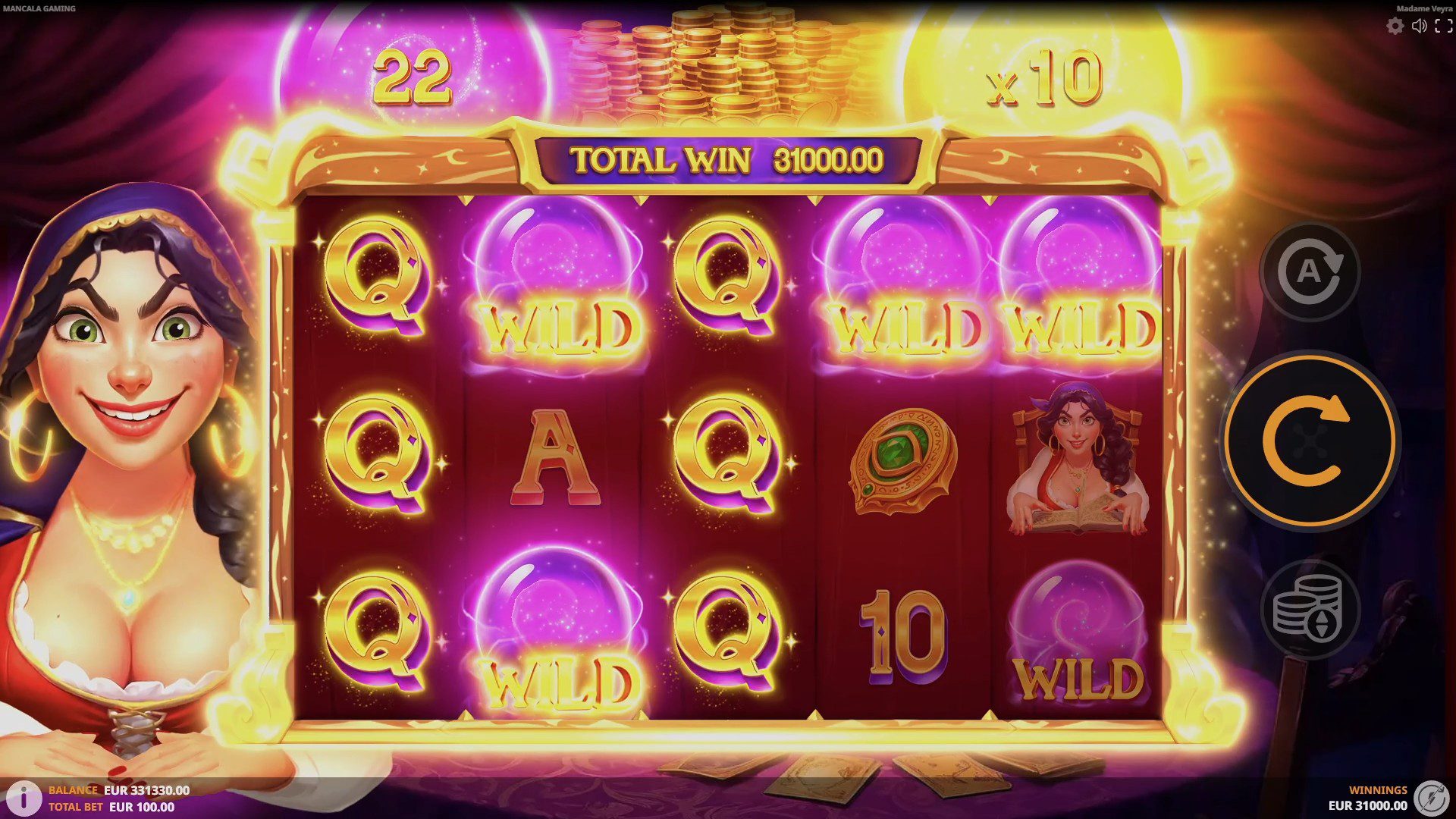 Madame Veyra è una slot online sviluppata da Mancala Gaming e progettata per giocatori professionali che apprezzano una combinazione di tema esoterico, strategia e meccaniche di gioco chiare. Il titolo trasporta l’utente in un mondo misterioso, dominato da simboli arcani, cristalli divinatori e talismani magici, in cui la figura centrale della veggente Madame Veyra guida il giocatore attraverso un’esperienza immersiva ma matematicamente solida. Contrariamente a molte slot moderne con funzionalità casuali e alta volatilità estrema, Madame Veyra si caratterizza per una volatilità media, un RTP del 95% e un range di puntata molto flessibile da 0,20 € a 200 €, rendendola perfetta per chi vuole bilanciare rischio e sostenibilità del bankroll.