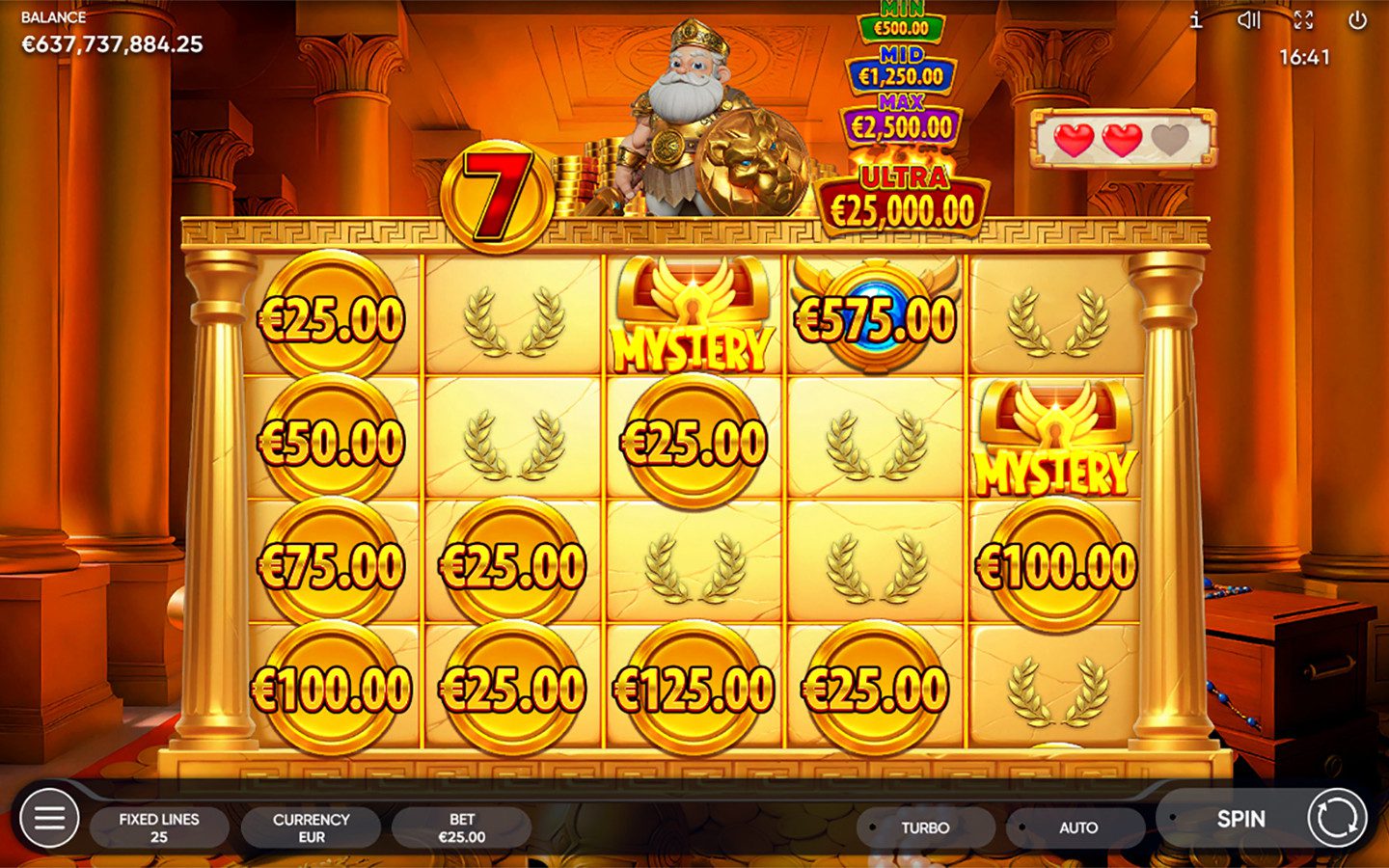 Sloteus Gold è una slot online sviluppata da Endorphina che porta i giocatori in un mondo di mitologia, ricchezze e avventure eroiche. Il gioco combina simboli classici con dettagli dorati e ambientazioni maestose che richiamano un’epoca di colossi e divinità, offrendo un’esperienza immersiva e coinvolgente. La slot è progettata per giocatori esperti, grazie alla sua volatilità alta che assicura vincite meno frequenti ma potenzialmente molto elevate, fino a 2.500× la puntata. La grafica curata e i simboli animati creano un’atmosfera epica, mentre i colori vividi e gli effetti luminosi enfatizzano ogni combinazione vincente. L’RTP del 96,01% e il sistema di 25 linee di pagamento fisse rendono la slot equilibrata e perfettamente adatta sia a sessioni di gioco intense che a tentativi high-risk/high-reward, offrendo divertimento costante e la possibilità di grandi payout.